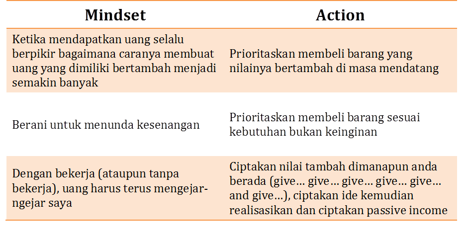 1. Ketika mendapatkan uang selalu berpikir bagaimana caranya membuat uang yang dimiliki bertambah menjadi semakin banyak.